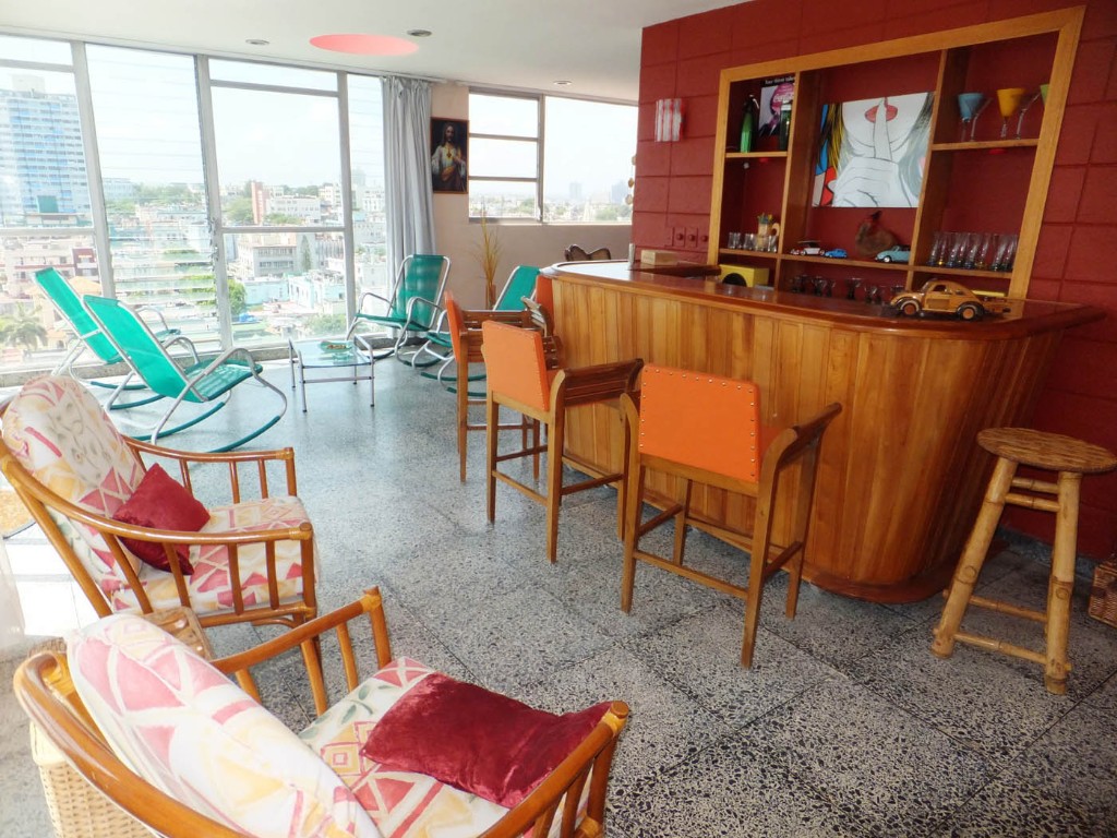 “Exclusivo y vistoso pent-house dúplex con hermosas vistas de la habana y el mar, único en el Vedado por sus características y ubicación. La propiedad es ATR, por lo que no ha sufrido cambios de propietarios desde su construcción en el año 1957. Presenta óptimas condiciones en su estado constructivo ya que ha sido remozado y modernizado sin afectar la estructura original y conservando el lujo característico de los años ’50. Posee pisos de granito en perfecto estado en todos sus espacios, a excepción de los baños y terraza superior, así como repisas y desayunador en mármol originales de la casa. En los techos de algunas zonas posee claraboyas originales de diferentes colores que brindan una iluminación y ambiente acogedor. Es sumamente luminoso y ventilado y brinda vistas a la ciudad y al mar desde todos sus cuartos y demás áreas comunes. Se distribuye en, primer nivel: recibidor, amplio salón en L, bar, terraza, comedor, cocina, habitación de usos múltiples, 1 baño, habitación con clóset con baño privado, escalera original de madera de teca montada al aire con acceso al 2do nivel: hall, 2 cuartos amplios con clóset, uno de ellos con cuarto vestidor, baño intercalado, pantry, patio de servicio con lavadero, terraza techada y solárium enchapado en madera techado con pérgolas. Tanto cocina, comedor, hall y uno de los baños presentan clósets y despensa. Posee una segunda entrada independiente a través de la escalera de servicio. Azotea libre con acceso limitado y garaje. El edificio se encuentra en óptimas condiciones y dispone de ascensor nuevo e intercomunicador. Superficie total de 246 m2. Agua 24 horas fría y caliente. Gas de la calle. Electricidad 110v y 220v. Cerca de 17 y G.